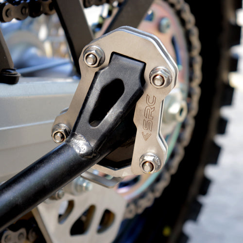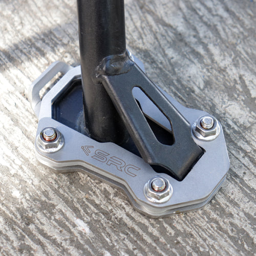 - Keeps your side stand from sinking into soft ground & hot pavement!