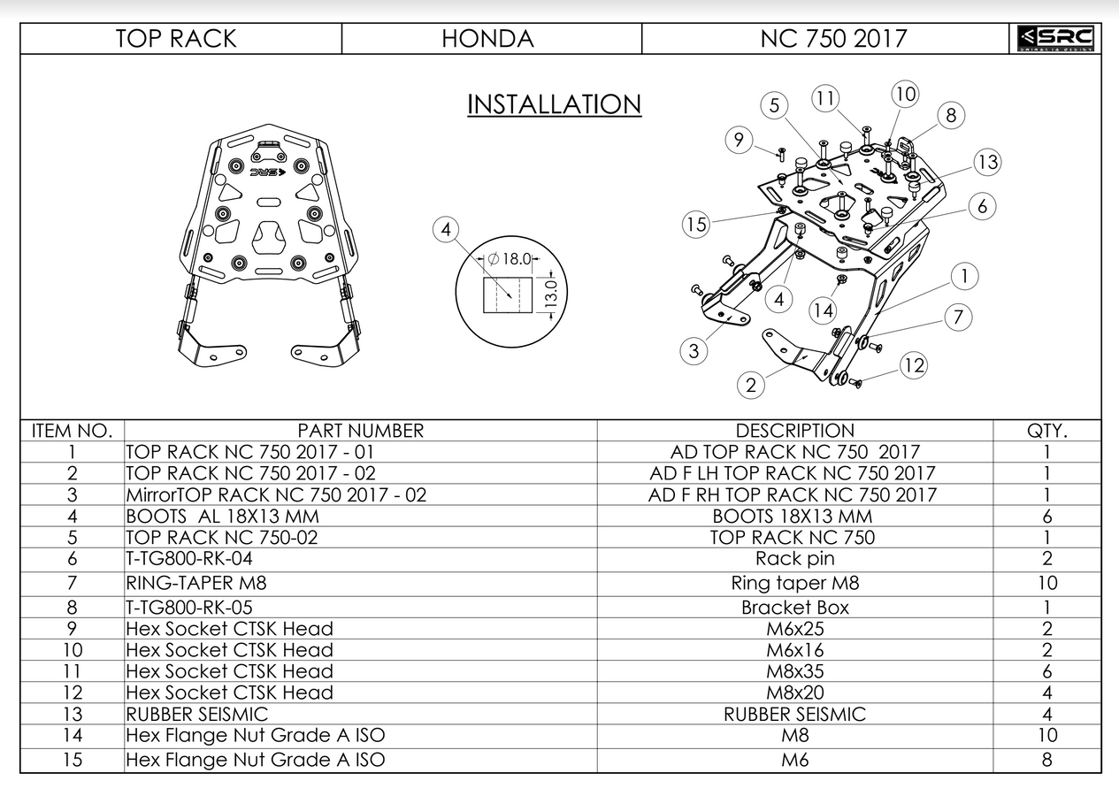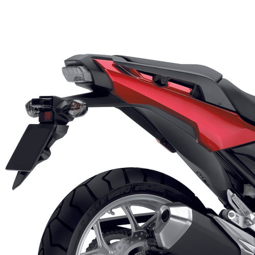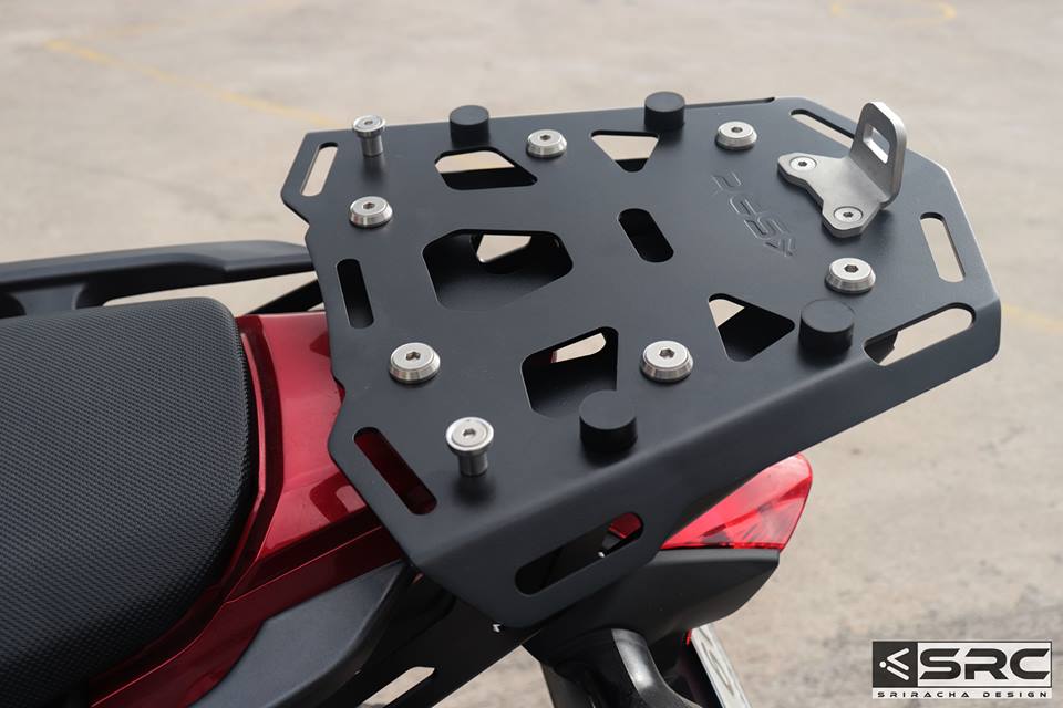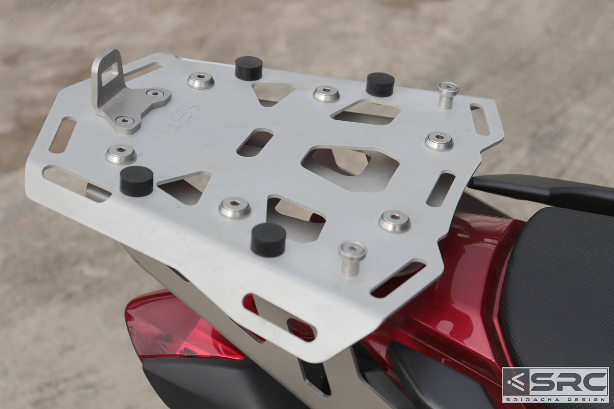 Trick lightweight aluminum tail rack in silver brushed aluminum or satin black powder coat with top quality stainless hardware for your NC750!