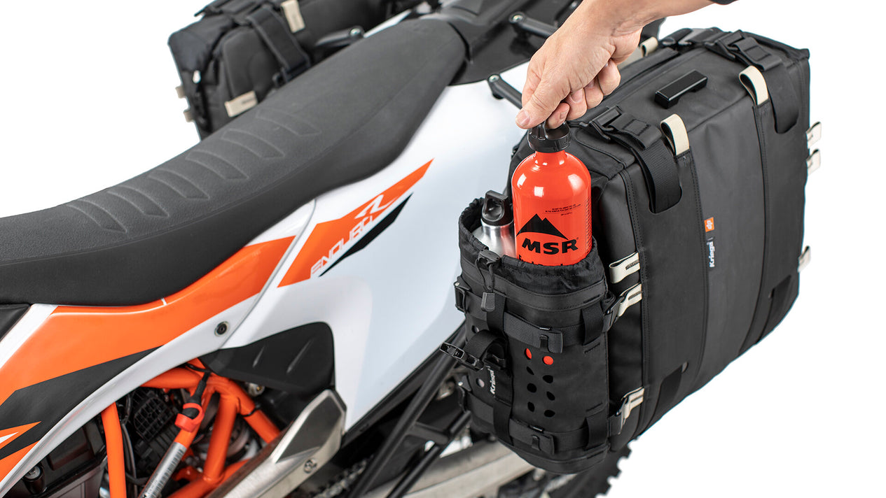 The OS-Bottle is a versatile heavy-duty bottle holder. Hook-on to an OS-PANNIER, US-DRYPACK or TANK and you have easy access to 2 x 1 litre drink or fuel bottles.