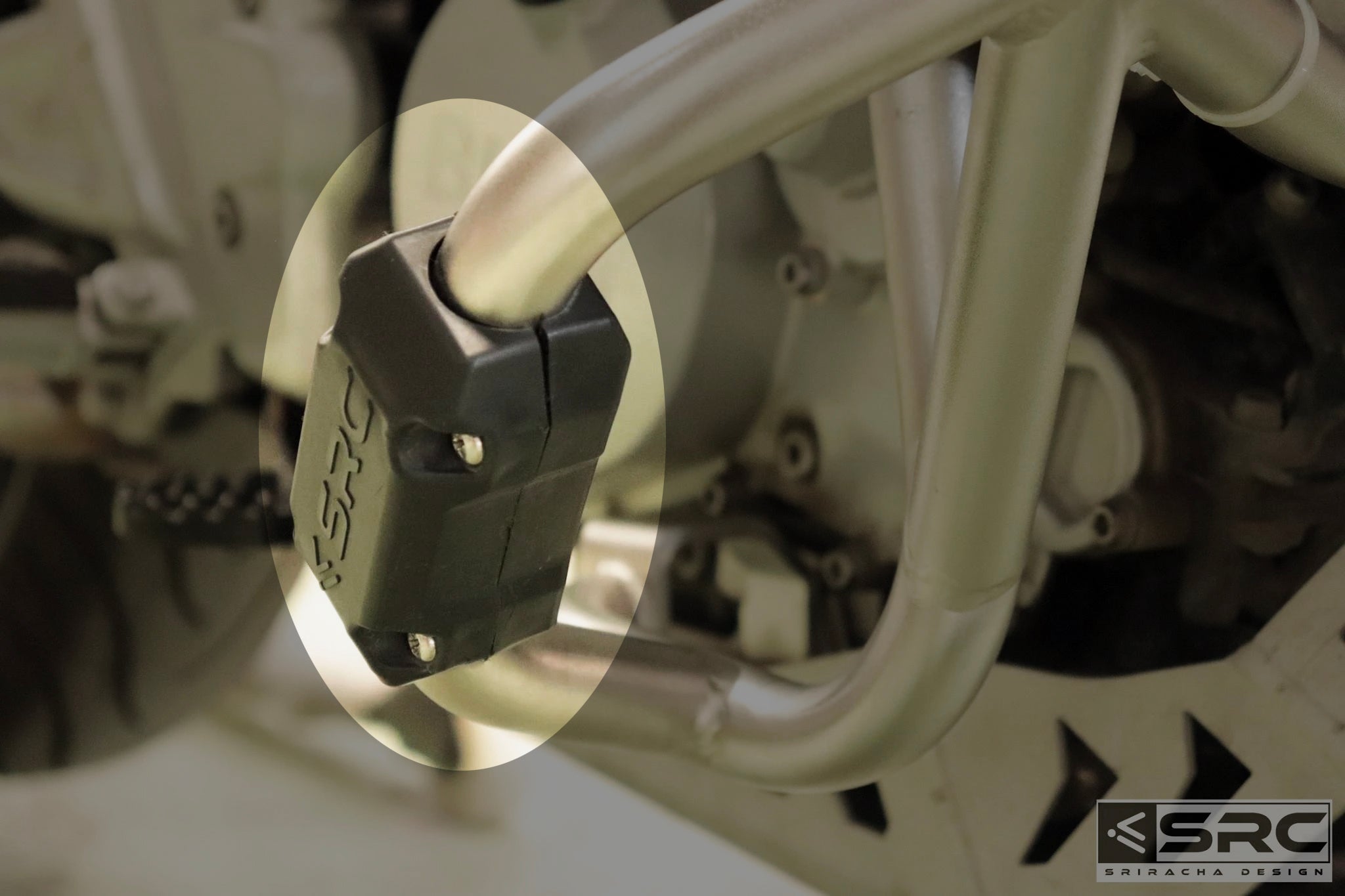 SRC Crash Bars have cool sacrificial nylon pads that are strategically positioned to be the point of impact if you happen to drop your bike or have a tip over. If you do happen to scratch one up, you can easily remove it and install a freshie!